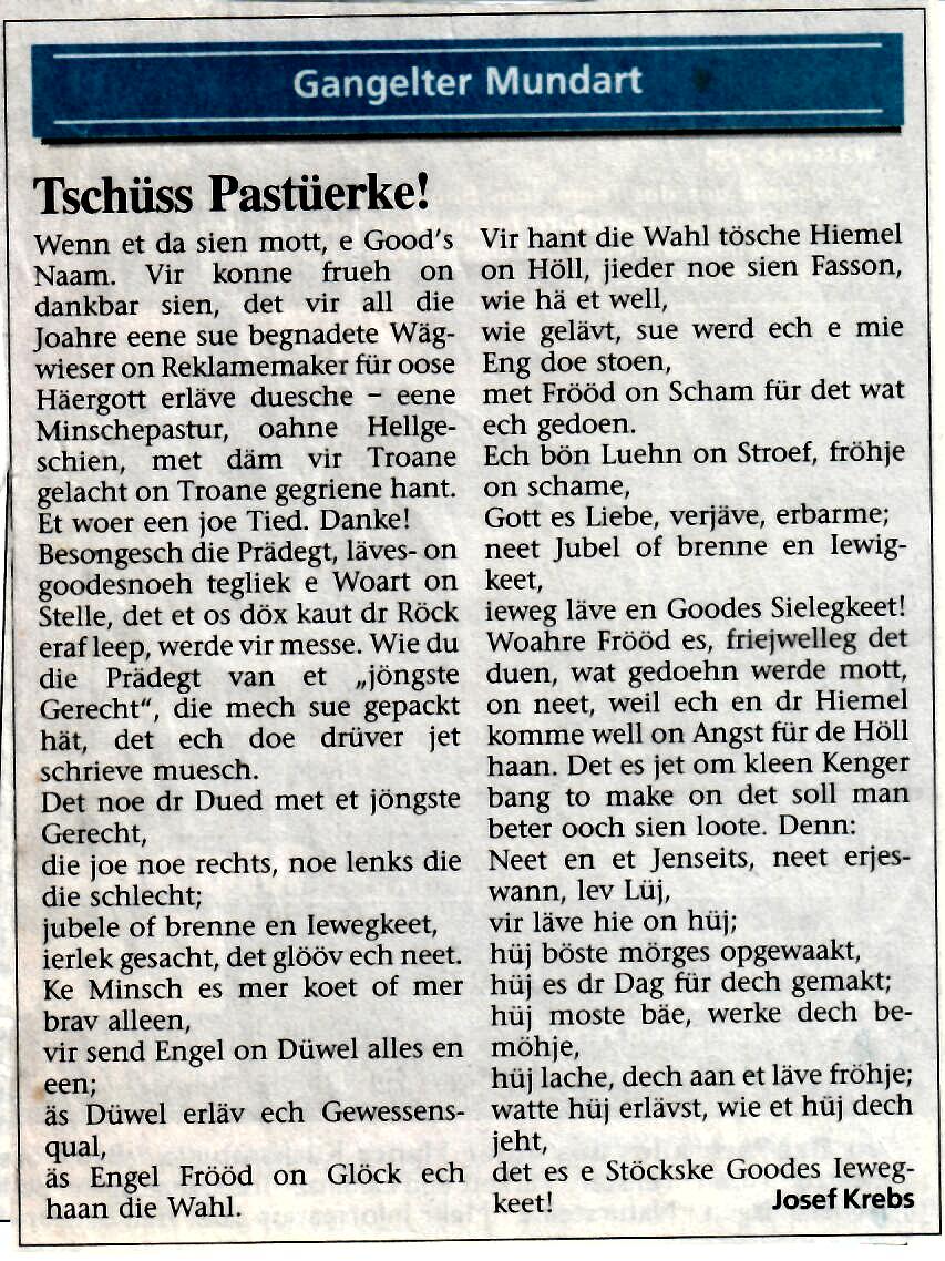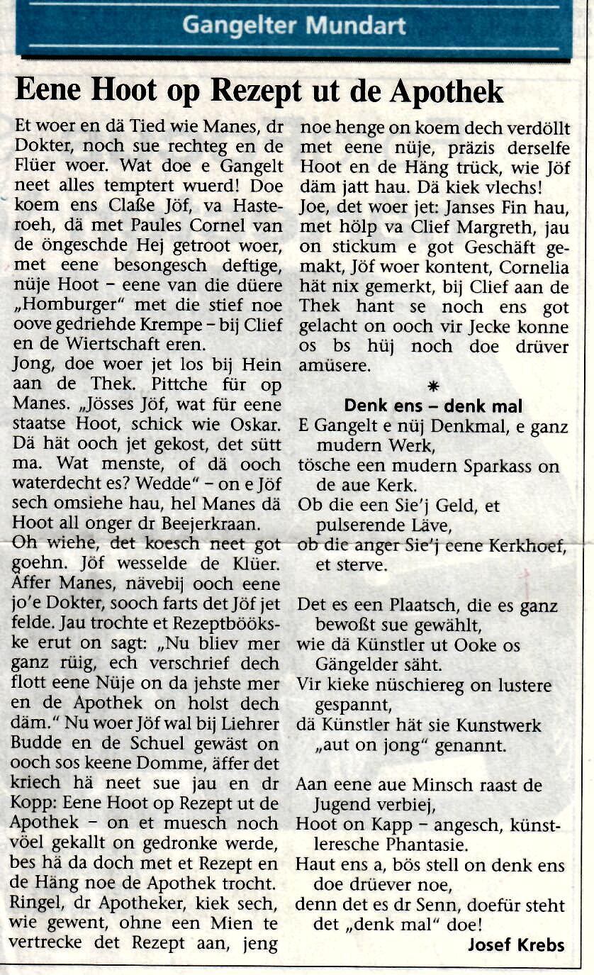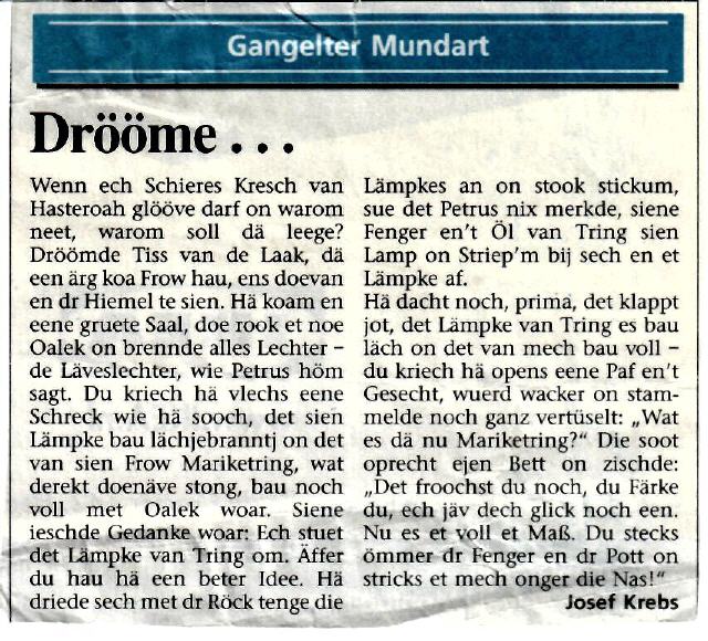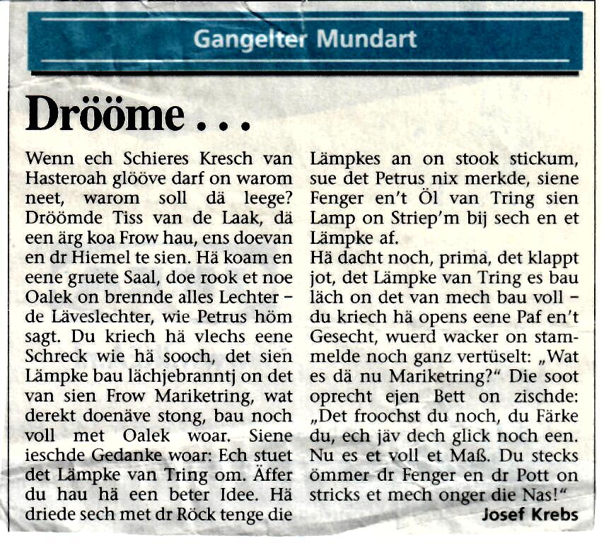 Wer kennt sie noch nicht - die lustigen Erzählungen von Josef Krebs - und alles in Gangelter Mundart.