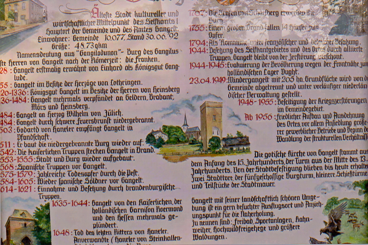 Davon berichtete schon unser Chronist Jacobus Kritzraedt 1644, ganz nach den Schilderungen ehemaliger Gangelter seiner Zeit. Er selbst schwärmte förmich von den Schiefergedeckten "Krebjen" und Türmen, die rund um die ganze Stadt blinkten.