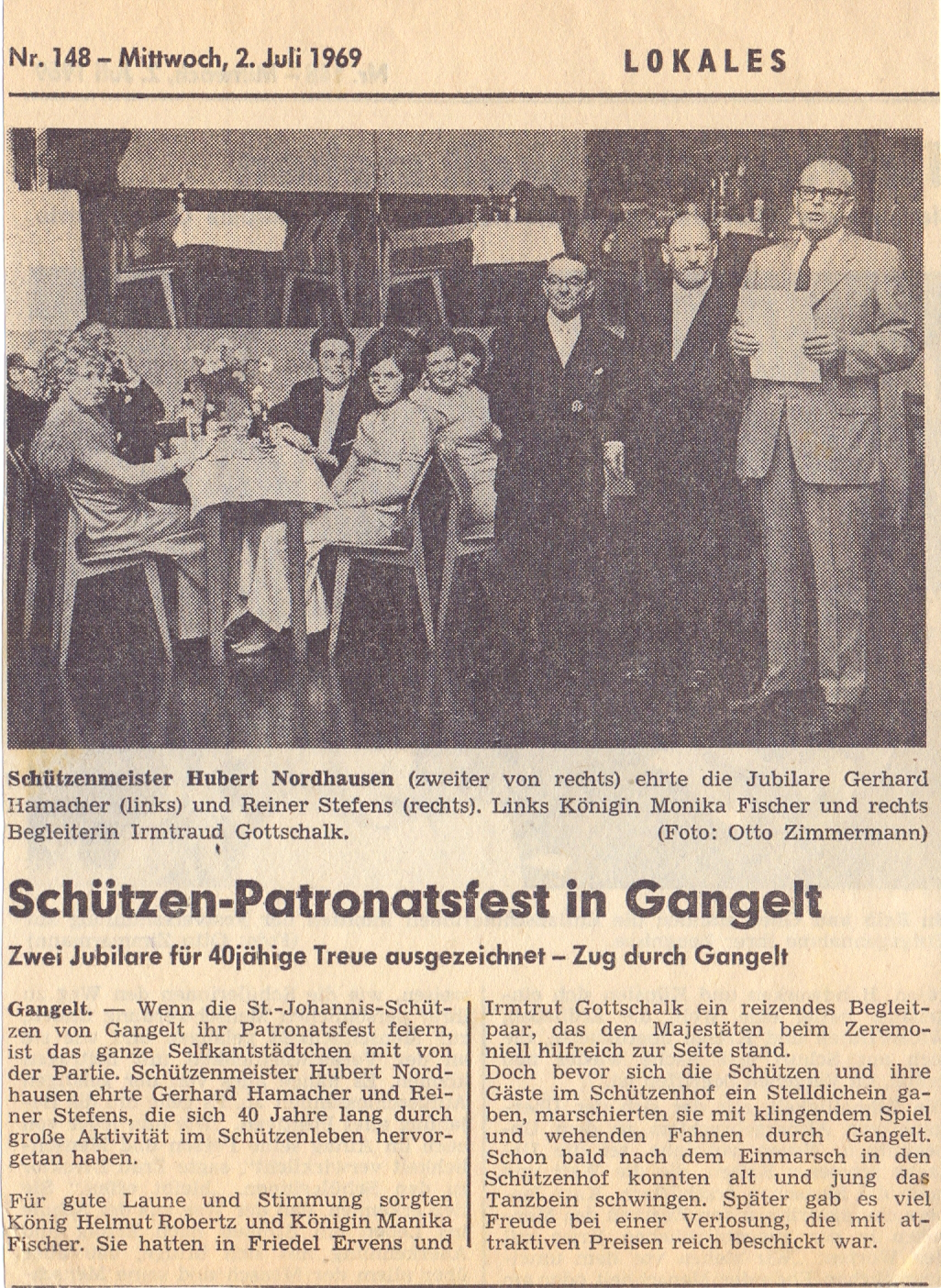 für Jung und Alt - einfach für jede Generation - ob als schöne bleibende Erinnerungen oder aktuell erlebt, meist gestaltet und begleitet von den Gangelter „Vereinigten Vereinen“, wie die St. Johanni-Schützenbruderschaft, das Tambour- und Pfeiferkorps, der Musikverein St. Hubertus und die Freiwillige Feuerwehr Gangelt.